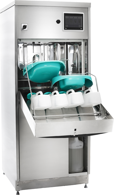 To empty, flush, wash and thermally disinfect re-usable human waste containers. Our ward washer-disinfectors are also suitable for processing of various care products and cleaning equipment.