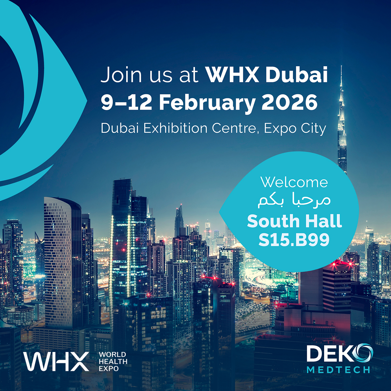 We are pleased to announce that DEKO MedTech will be exhibiting at WHX Dubai, taking place 9–12 February at the Dubai Exhibition Centre.